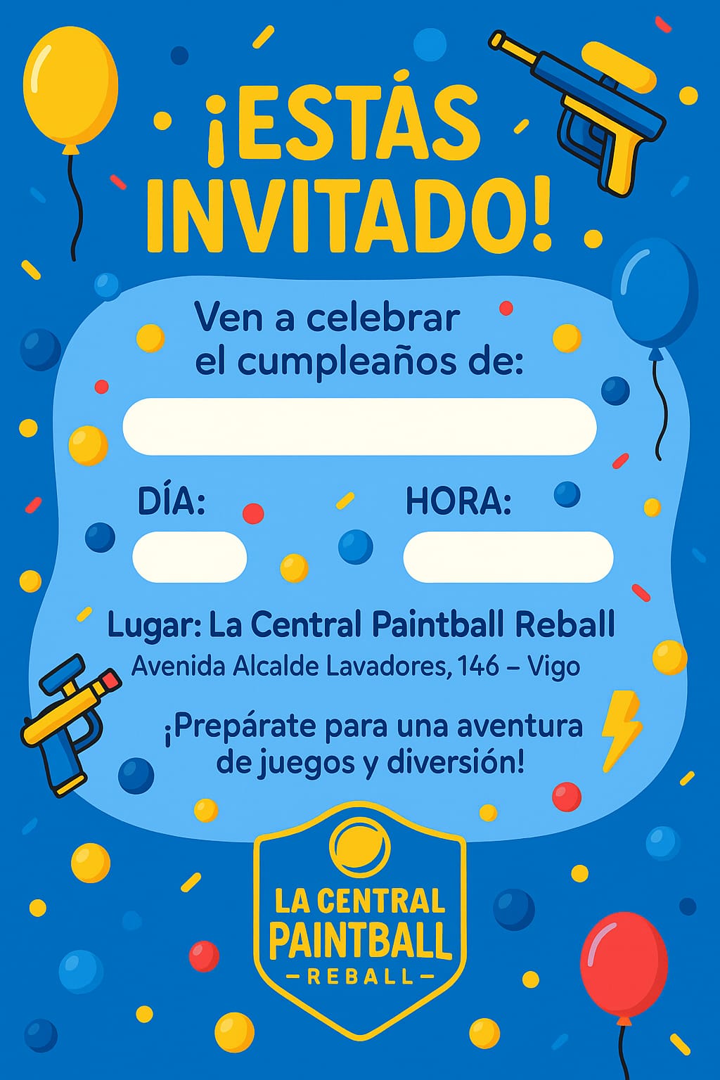 La Central Paintball vuelve a abrir en Vigo con nuevas instalaciones. Se trata de un centro único en Galicia, diseñado para ofrecerte una experiencia de paintball inolvidable, con todas las comodidades y la máxima seguridad.